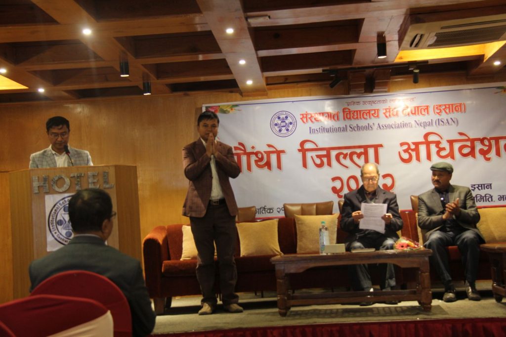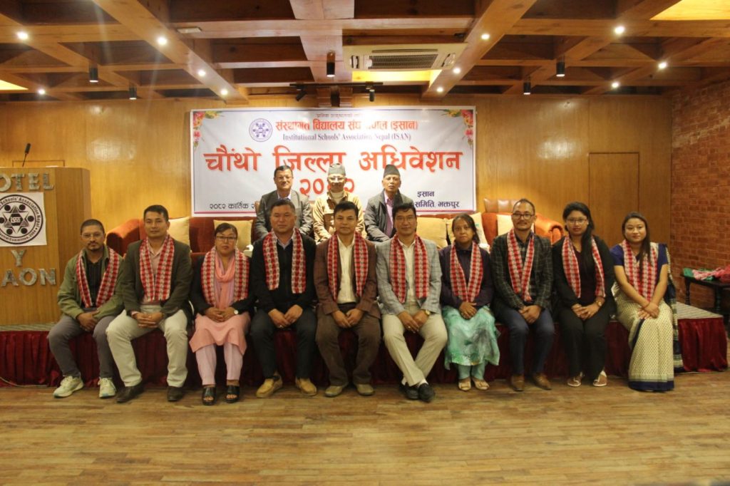 भक्तपुर,  संस्थागत विद्यालय संघ नेपाल (इसान) भक्तपुरको चौंथो जिल्ला अधिवेशन भक्तपुरको होटल सिटी गाउँमा सम्पन्न भएको छ। नेपाल मजदुर किसान पार्टीका अध्यक्ष नारायणमान बिजुक्छें (रोहित) को प्रमुख आतिथ्यमा भएको अधिवेशनले नयाँ ११ सदस्यीय जिल्ला समिति गठन गरेको छ, जसको अध्यक्षमा कृष्णराम त्वानाबासू पुनः निर्वाचित भएका छन्।
